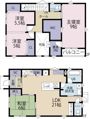 4LDK 1F/LDK 21.0帖 1室 1F/和室 6.0帖 1室 2F/洋室 9.0帖 1室 2F/洋室 5.5帖 1室 2F/洋室 5.0帖 1室 |