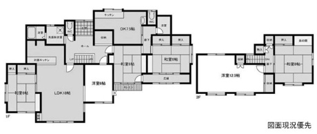 6LDK 1F/LDK 18.0帖 1室 1F/DK 7.5帖 1室 1F/洋室 6.0帖 1室 1F/和室 6.0帖 3室 2F/洋室 12.5帖 1室 2F/和室 8.0帖 1室 |