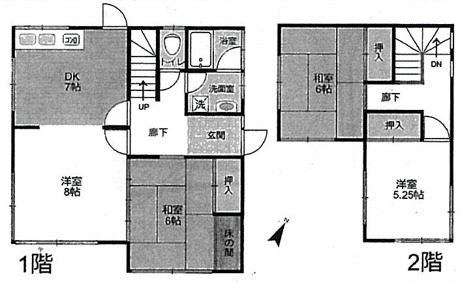 4LDK 1F/DK 7.0帖 1室 1F/洋室 8.0帖 1室 1F/和室 6.0帖 1室 2F/和室 6.0帖 1室 2F/洋室 5.2帖 1室 |