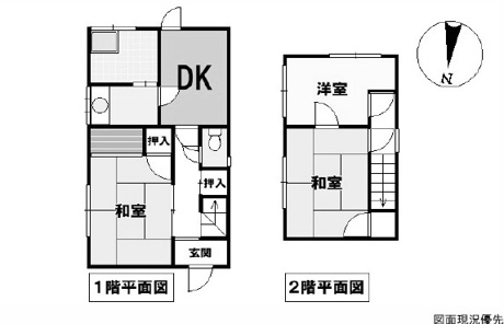 3DK 1F/DK 1室 1F/和室 1室 2F/和室 1室 2F/洋室 1室 |