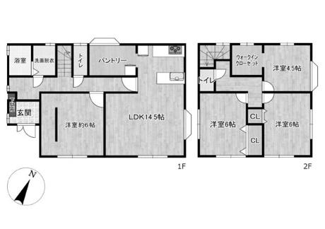 4LDK 1F/LDK 14.5帖 1室 1F/洋室 6.0帖 1室 2F/洋室 6.0帖 2室 2F/洋室 4.5帖 1室 |