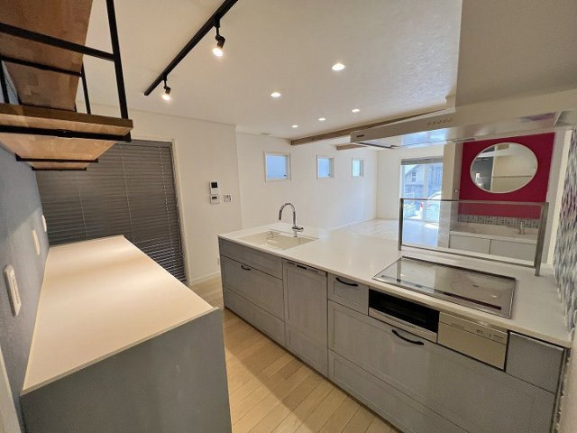 太陽光発電システム4.05kWを搭載。キッチン裏には回遊性のある3.5帖のパントリーを設け、利便性と収納力を兼ね備えています。収納が充実した快適な住まいです。