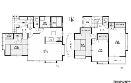 4LDK 1F/LDK 16.7帖 1室 1F/和室 5.9帖 1室 2F/洋室 7.4帖 1室 2F/洋室 5.9帖 1室 2F/和室 5.9帖 1室 |
