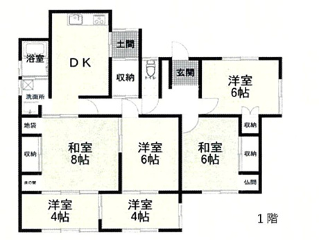 4DK 1F/DK 1室 1F/和室 8.0帖 1室 1F/和室 6.0帖 1室 1F/洋室 6.0帖 2室 |