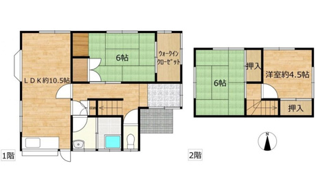 3LDK 1F/LDK 10.5帖和室 6.0帖 2F/和室 6.0帖洋室 4.5帖 |