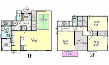 3LDK 1F/LDK 22.0帖 1室 2F/洋室 7.0帖 1室 2F/洋室 6.0帖 2室 |