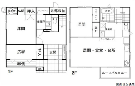 2LDK 1F/洋室 1室 2F/LDK 1室 2F/洋室 1室 |