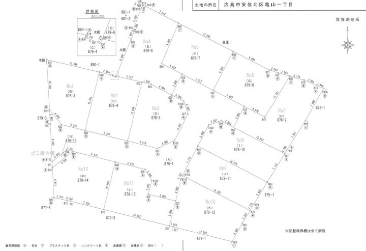 ※ゴミ置場(地番:亀山一丁目878-15)に共有持分:各1/12 ※トータテハウジング建築条件付 ※土地決済時期は建物着工時とする ※開発道路(地番:亀山一丁目878-15)は広島市に移管予定 ※土地売期限:R8年2月28日まで |