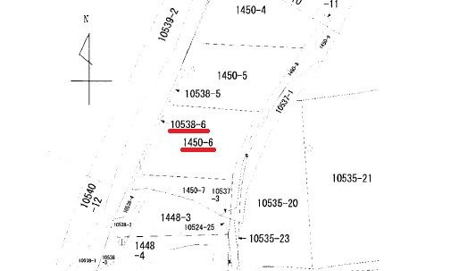 ■建築条件無し ■地番:字南倉ヶ迫1450-6(242.46㎡) 字倉ヶ迫10538-6(8.16㎡) ■古家有(建物未登記) |