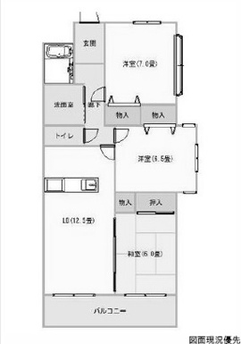 3LDK LD 12.5帖 1室K 1室洋室 7.0帖 1室洋室 6.5帖 1室和室 6.0帖 1室 |