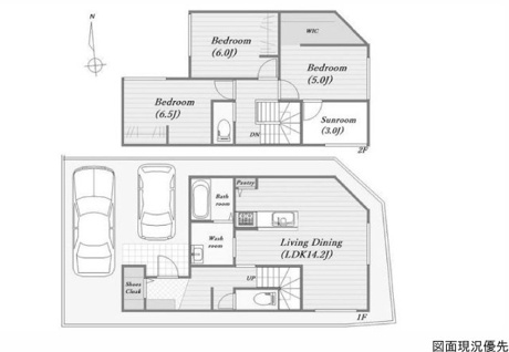 3LDK 1F/LDK 14.2帖 1室 2F/洋室 6.5帖 1室 2F/洋室 6.0帖 1室 2F/洋室 5.0帖 1室 |