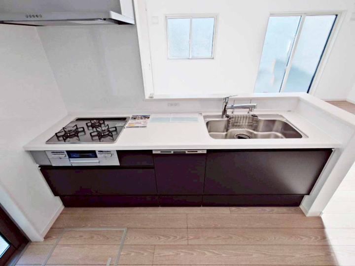 陽当り良好閑静な住宅地フローリングバルコニー都市ガス公営水道公共下水システムキッチン対面式キッチン温水洗浄便座洗面台トイレ2ヶ所ユニットバス浴槽TVモニタ付インターホン複層ガラスディンプルキー住戸内覧可能平坦地完成済み