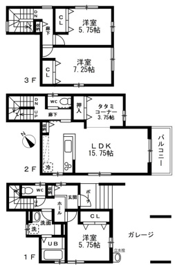 4LDK 1F/洋室 5.7帖 1室 2F/LDK 15.7帖 1室 2F/和室 3.7帖 1室 3F/洋室 7.2帖 1室 3F/洋室 5.7帖 1室 |
