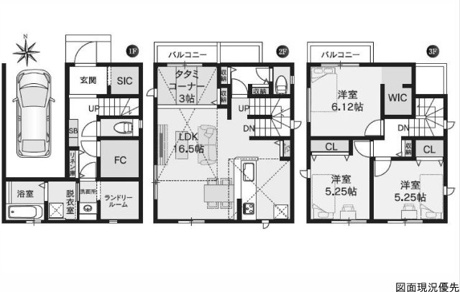 3LDK 2F/LDK 16.5帖 1室 3F/洋室 6.1帖 1室 3F/洋室 5.2帖 2室 |