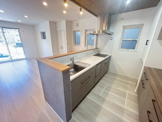 陽当り良好閑静な住宅地海が近いフローリング公営水道公共下水オール電化2面バルコニー食器洗乾燥機システムキッチン対面式キッチン浴室乾燥機温水洗浄便座洗面台洗髪洗面化粧台トイレ2ヶ所ユニットバス浴槽床下収納TVモニタ付インターホン複層ガラスディンプルキー平坦地