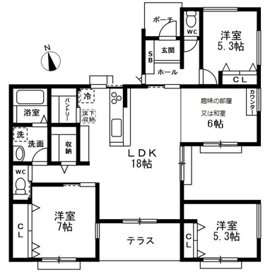 4LDK LDK 18.0帖 1室洋室 5.3帖 2室和室 6.0帖 1室洋室 7.0帖 1室 |