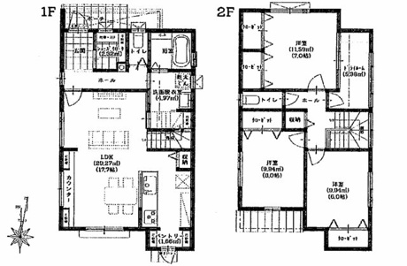 3LDK 1F/LDK 17.7帖 1室 2F/洋室 7.0帖 1室 2F/洋室 6.0帖 2室 |