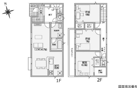 3LDK+1S(納戸) 1F/LDK 16.7帖 1室 2F/洋室 7.0帖 1室 2F/洋室 6.5帖 1室 2F/洋室 6.0帖 1室 2F/S 1.5帖 1室 |