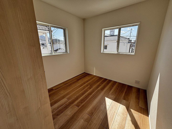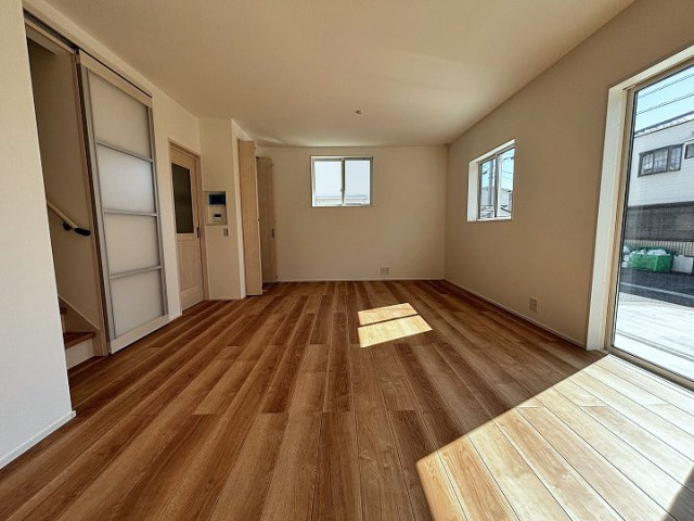 東南角地につき、陽当たり良好な住まいとなっております。広々とした玄関ポーチは、雨天時でも安心して荷物を置けるゆとりのある設計です。