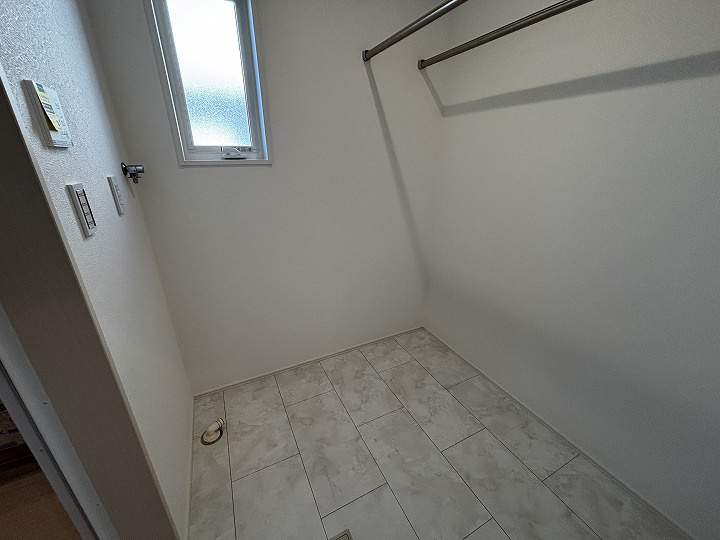 玄関クロークを備え、洗面室と物干しスペース付きの脱衣所を分けた間取りは、家事動線にも配慮されています。子育て世代をはじめ、幅広い世代におすすめの物件です。