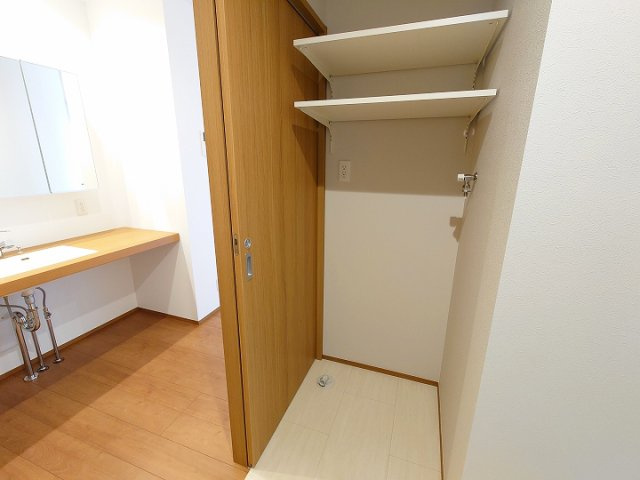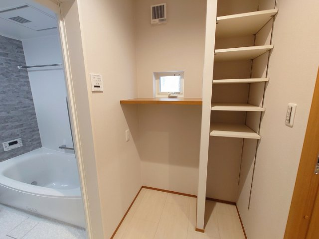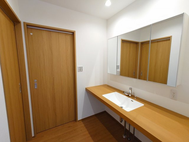 可変型3LDK(ライフスタイルに合わせて間仕切りを設けることで4LDKへ変更可能)。ゆとりのある18.4帖のLDKには可動棚を2か所配置し、使い勝手にも配慮しています。おしゃれな造作の広々とした洗面カウンターに加え、洗面室と脱衣所を分けた設計で、ゆったりと快適にご利用いただけます。玄関ホールも広く、全体的にゆとりのある住まいです。