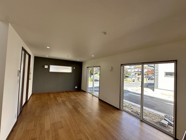 角地のため開放感があります。LDKは19帖と広く家具の配置もし易いです。キッチンと洗面室が近く家事動線も良好。