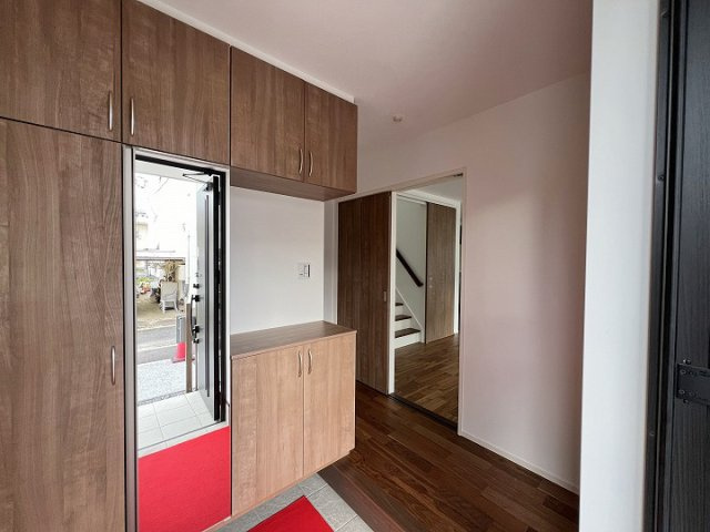 ●省令準耐火構造仕様 ●性能向上計画認定住宅(ZEH水準) ●断熱等級5 ●制振筋かい金物 ●ハイクリンボード ●高機能トイレ ●抗ウイルス抗菌フローリング ●住設あんしんサポート ●アルミ樹脂複合サッシ ●Low‐Eペアガラス ●オール電化住宅 ●IH ●食器洗乾燥機 ●玄関ドアタッチキー ●カップボード ●水道負担金:137,500円価格に含む ●瑕疵担保保険:80,000円別途要 ●車回し(共用地)については、覚書を作成いたします ●上記土地面積は、車回しの土地(共用地)約10.5㎡を含む ●上記土地以外に、セットバック部分の土地(12.54㎡)有り ●駐車2台可(車種による) |