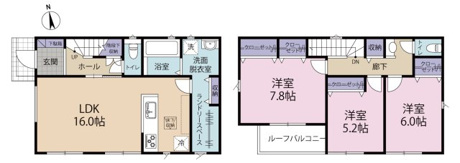 3LDK 1F/LDK 16.0帖 1室 2F/洋室 7.8帖 1室 2F/洋室 6.0帖 1室 2F/洋室 5.2帖 1室 |