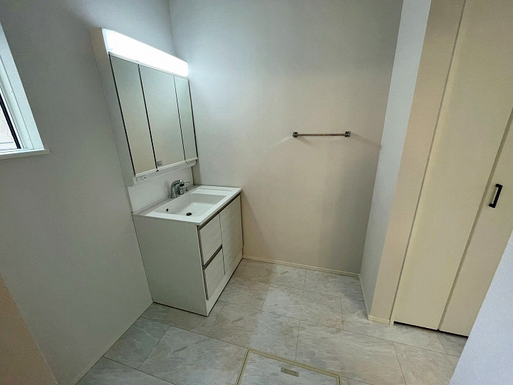3LDKの間取りで、洗面脱衣所にはランドリースペースを設置し、