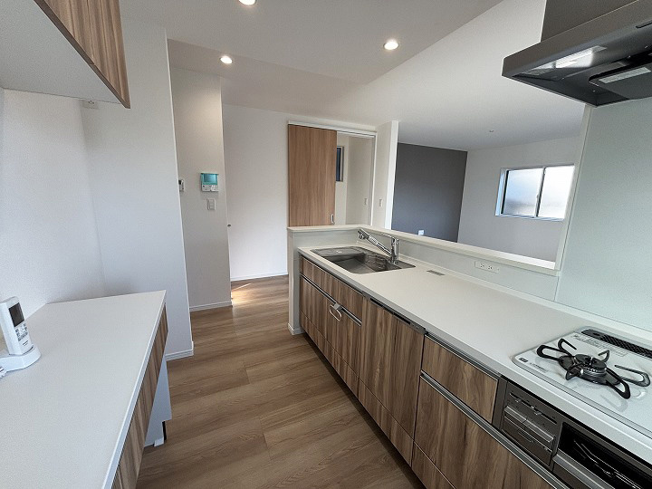 閑静な住宅地オープンハウスバルコニープロパンガス公営水道公共下水食器洗乾燥機システムキッチン対面式キッチン浴室乾燥機温水洗浄便座トイレ2ヶ所床下収納TVモニタ付インターホン住戸内覧可能LDK18帖以上リビング階段完成済み