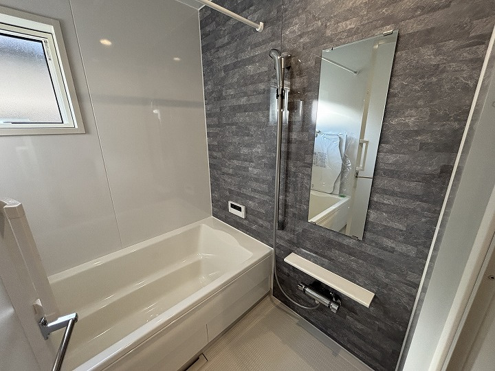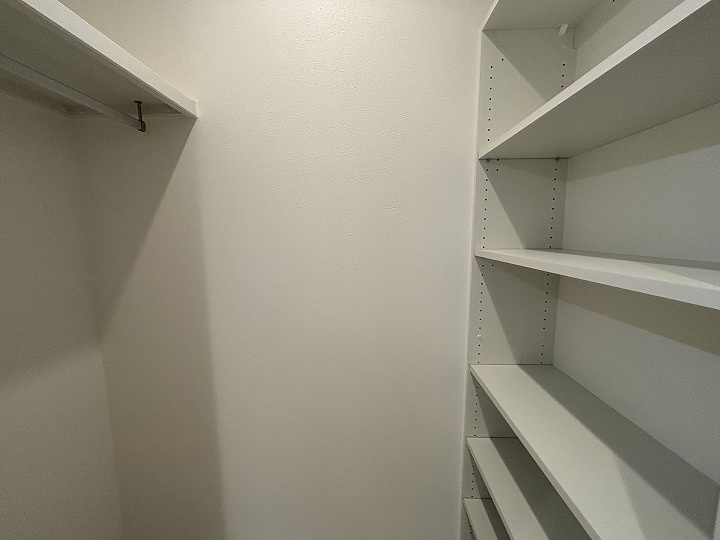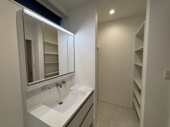 洗面脱衣所は広くゆとりがあり、収納も充実した機能的な間取りが特徴です。