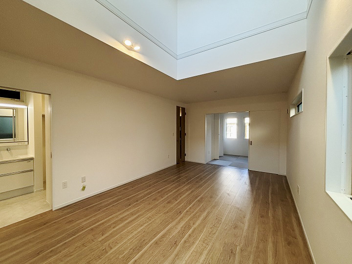 リビングには吹き抜けを採用し、開放感と採光を重視した設計が魅力です。