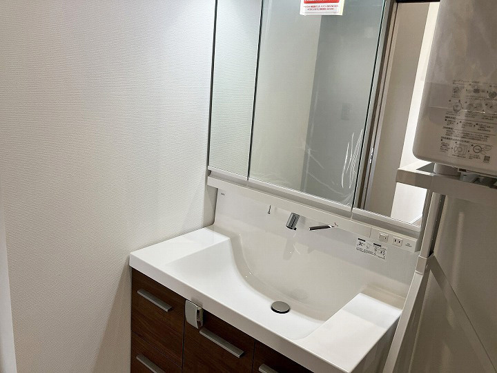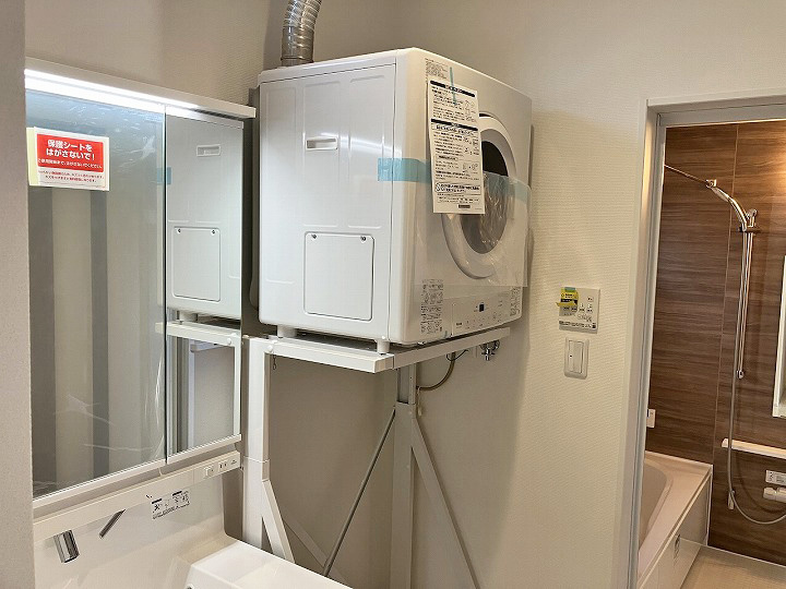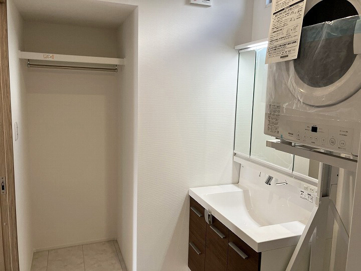 洗面脱衣所には収納があり、乾太くんも設置済み。