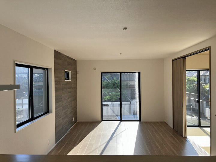 リビングにはエコカラットを採用し、おしゃれなデザイン性と湿度調整機能を
