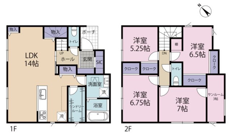 4LDK 1F/LDK 18.1帖 1室 2F/洋室 7.0帖 1室 2F/洋室 6.7帖 1室 2F/洋室 6.5帖 1室 2F/洋室 5.2帖 1室 |