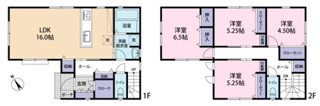4LDK 1F/LDK 16.0帖 1室 2F/洋室 6.5帖 1室 2F/洋室 5.2帖 2室 2F/洋室 4.5帖 1室 |