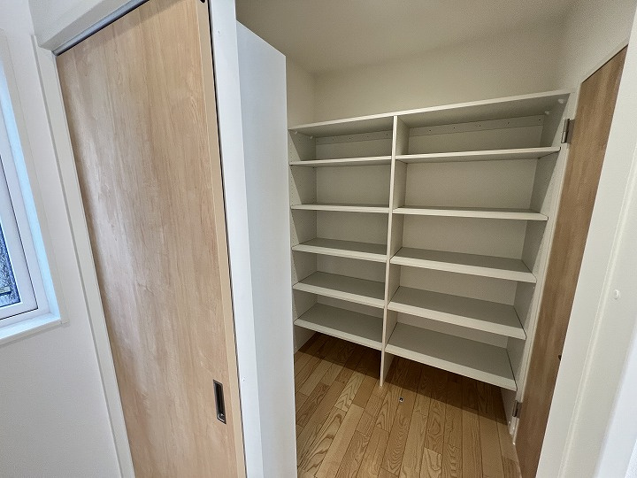 19帖の広々LDKには造作カウンターを設置。SICやストレージ、可動棚など収納力に優れた間取り設計です。