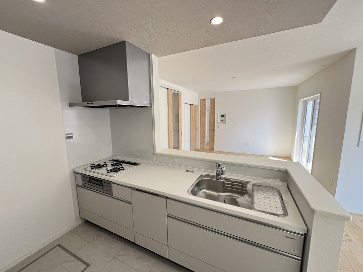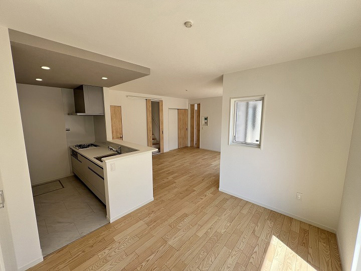 バルコニー都市ガス公営水道公共下水食器洗乾燥機システムキッチン対面式キッチン浴室乾燥機温水洗浄便座トイレ2ヶ所床下収納TVモニタ付インターホン平坦地LDK18帖以上リビング階段