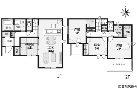 4LDK 1F/LDK 16.0帖 1室 1F/和室 4.5帖 1室 2F/洋室 7.0帖 1室 2F/洋室 6.0帖 1室 2F/洋室 5.0帖 1室 |