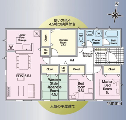 3LDK+1S(納戸) 1F/LDK 16.5帖 1室 1F/和室 4.5帖 1室 1F/洋室 5.0帖 1室 1F/洋室 4.5帖 1室 1F/S 4.5帖 1室 |