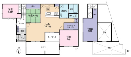 3LDK 1F/LDK 20.2帖 1室 1F/和室 4.5帖 1室 1F/洋室 7.0帖 1室 1F/洋室 5.3帖 1室 |