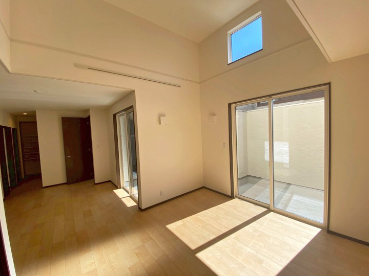 リビングには吹き抜けを設け、採光をたっぷり取り入れることで、明るく開放的なモダンな空間に仕上げています。ゆめタウン大竹まで徒歩6分という便利な立地にあり、平屋設計のため、ライフスタイルが変化しても長く快適に住み続けられる家です。