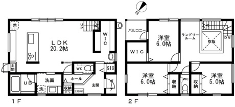 3LDK 1F/LDK 20.2帖 1室 2F/洋室 6.0帖 2室 2F/洋室 5.0帖 1室 |
