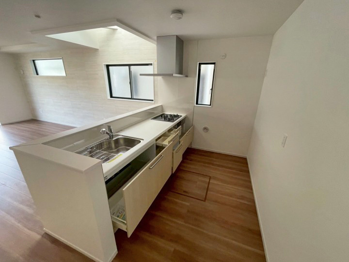 閑静な住宅地オープンハウスバルコニープロパンガス公営水道公共下水2面バルコニーシステムキッチン対面式キッチン温水洗浄便座トイレ2ヶ所床下収納ウォークインクロゼットTVモニタ付インターホン住戸内覧可能LDK18帖以上完成済み