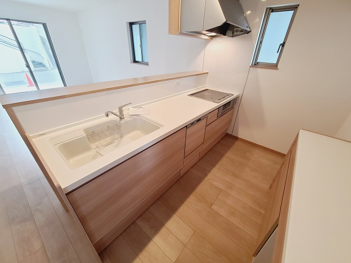閑静な住宅地ベランダ公営水道公共下水オール電化24時間換気システム食器洗乾燥機システムキッチン対面式キッチン浴室乾燥機温水洗浄便座床下収納TVモニタ付インターホン複層ガラスLDK18帖以上リビング階段完成済み