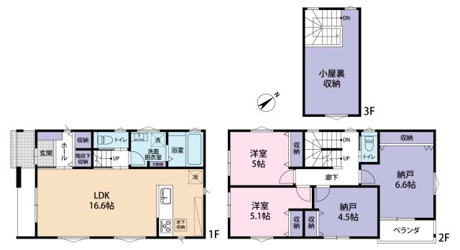2LDK+2S(納戸) 1F/LDK 16.6帖 1室 2F/洋室 5.1帖 1室 2F/洋室 5.0帖 1室 2F/S 6.6帖 1室 2F/S 4.5帖 1室 |