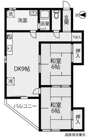 ピュアークック徒歩2分でお買い物楽々ですね♪2DKの間取りで現在賃貸中のオーナーチェンジ物件です。