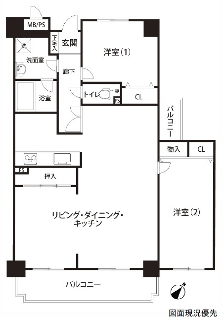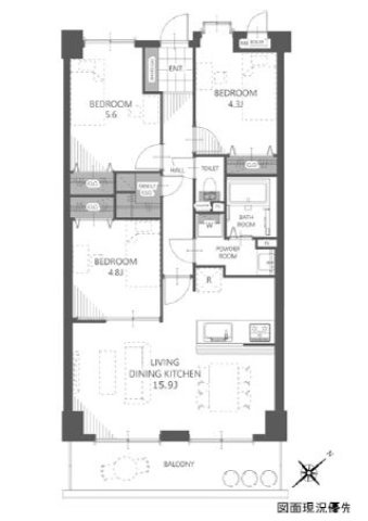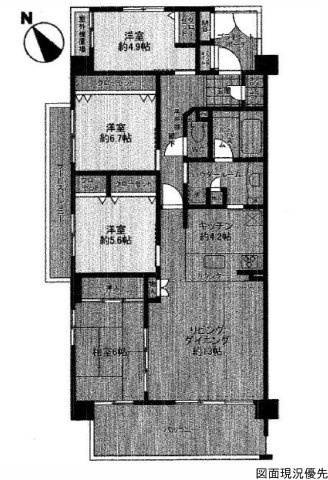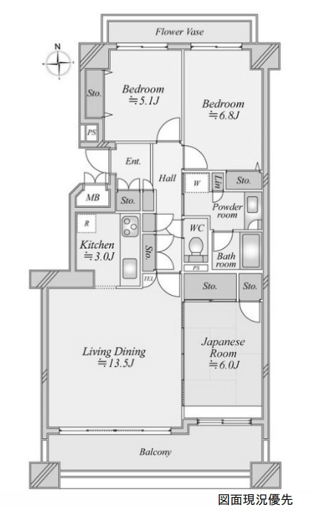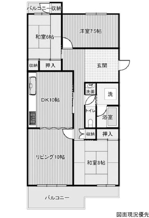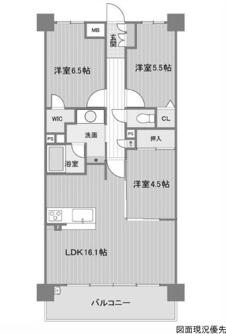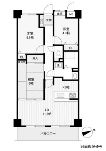 1996年7月完成の専有面積68㎡ 3LDK リノベーション向け物件。 高層階で陽当良好です。単身から4人家族まで幅広く対応できる間取りです。
