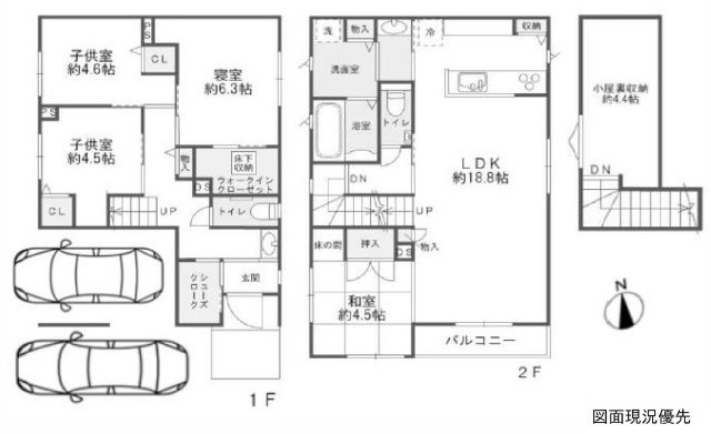 全居室収納付の平地です♪業務用スーパーや日用品など生活環境の心配もありあませんね!リビング収納は書庫としても利用可能です!