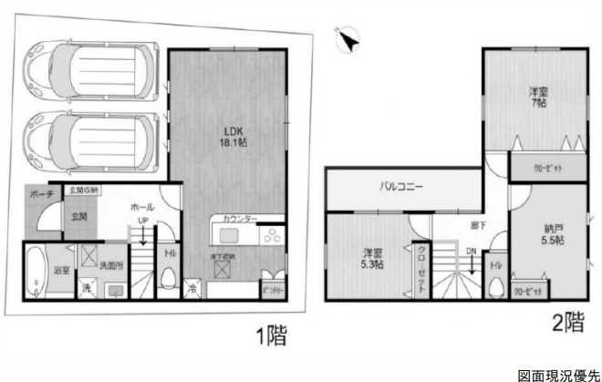 オール電化住宅!前面道路6m以上!書斎や主寝室にクローゼット有!駐車場2台完備!